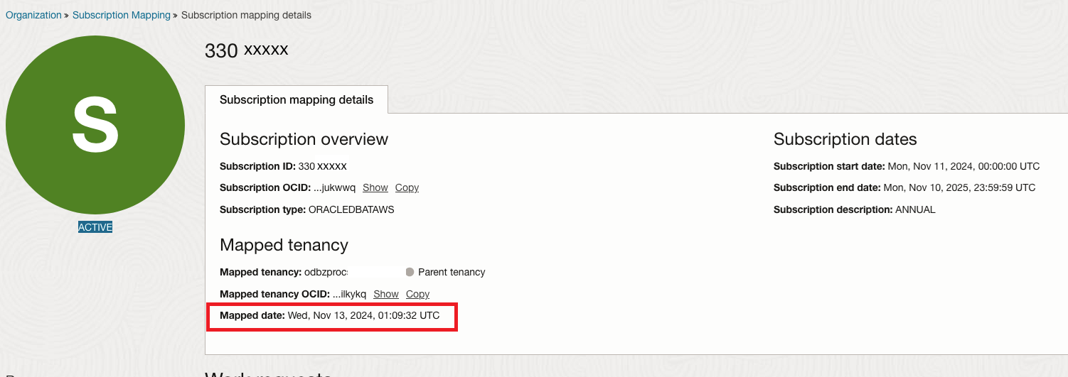 After you link an OCI account, you can confirm Oracle Database@AWS activation by checking a few pages in the Oracle Cloud Console.