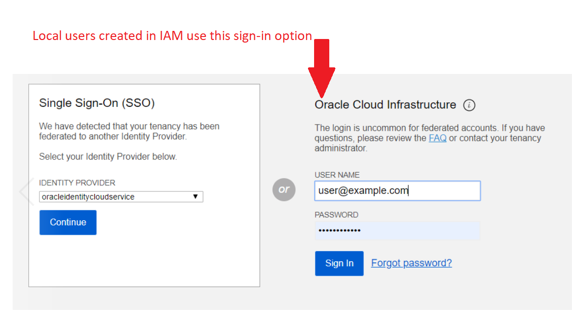テナンシがOracle Identity Cloud Serviceとフェデレートされている場合は、ユーザーを管理するためにOracle Cloud InfrastructureコンソールでのOracle Identity Cloud Serviceユーザーおよびグループの管理を参照してください。